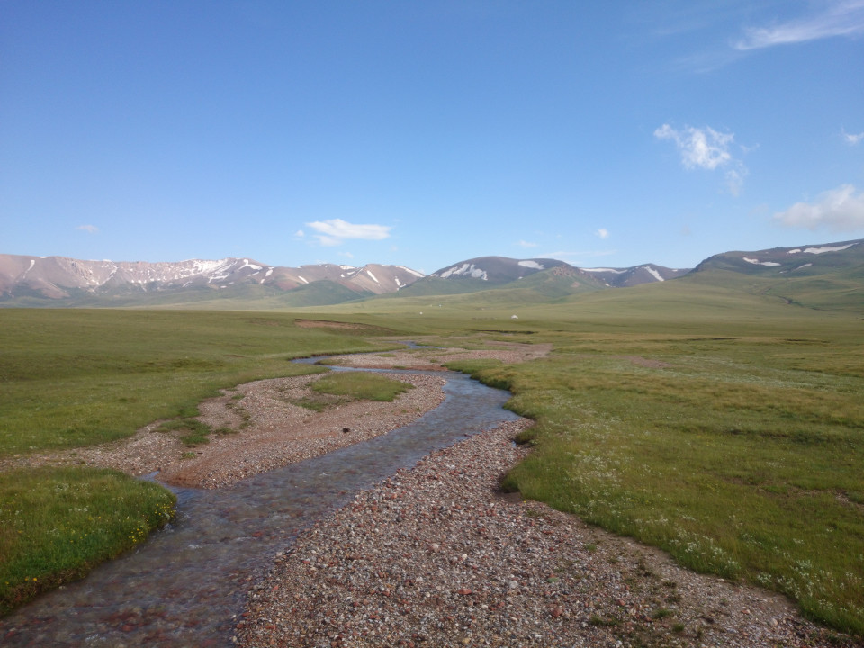 What a wonderful morning. The sun was shining, the creek I had camped along was gurgling. I was having a great time. I was also being pretty slow. It's hard to really want to move fast when it is just so nice about. I also knew that the start of the day was going to be tough, it was a big climb up to Song Kol. This isn't a town, it's a large lake trapped up in an alpine basin. Getting up there was going to be a bit of a challenge. Well to be honest, by this point on the trip I don't think large ascents like this feel like a challenge so much. They do, however, take a lot of time. It was going to be a slow day.