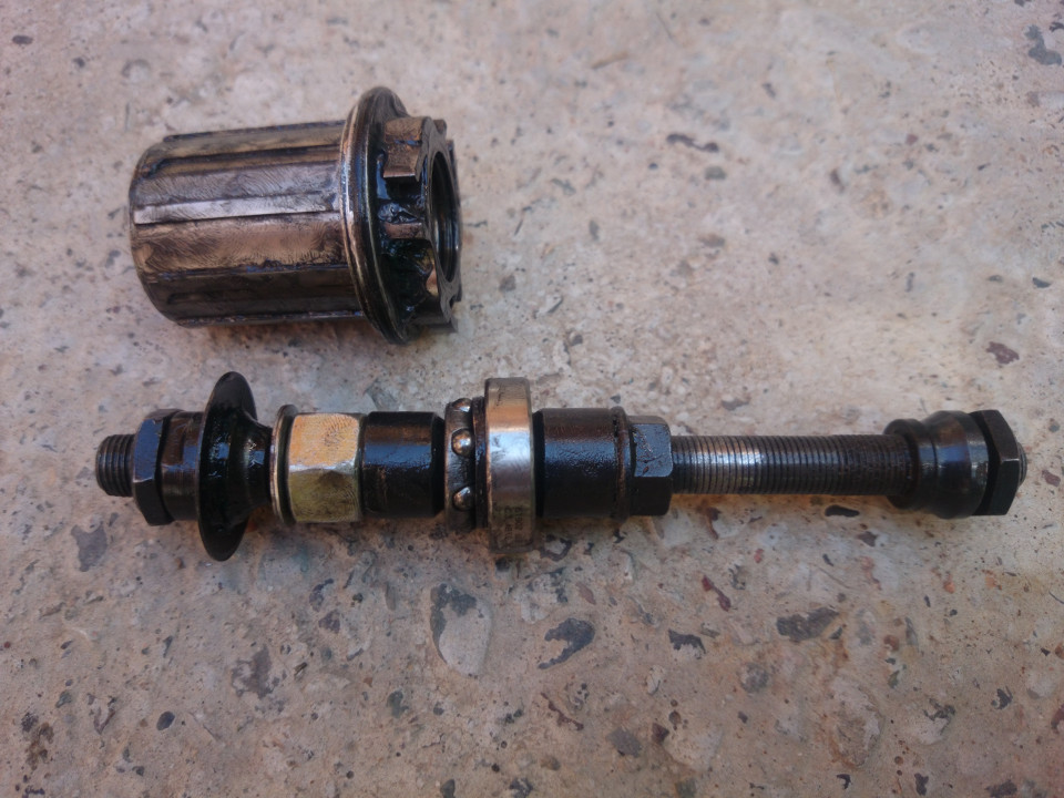 And today there was still a problem. Sigh. When I tested the hub by itself, everything seemed to work perfectly. Once the wheel was on the bike, though, the freehub would no longer spin. Really annoying. It took a while for me to figure out what was going on. There was a very minor, but incredibly critical, flaw in my design from yesterday. Basically, it would fail when I put any weight on it. I've corrected this error and now things are working pretty close to perfect. I think I finally got it. I have tested it. I should be ready to get on the road tomorrow.