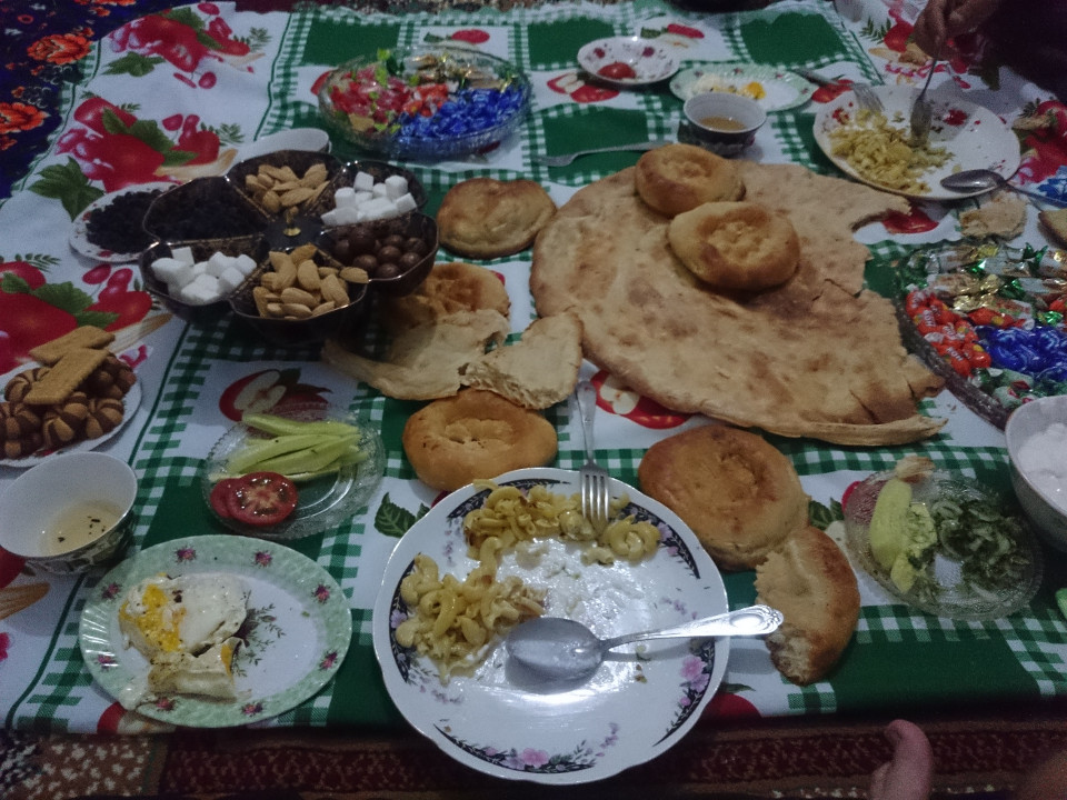Leaving Dushanbe was remarkably simple. The road was decently flat, for once in this country, with just a few low hills on the edge of the city. Outside of that, the road cuts through broad valley. Not much around other than a few farms. I can tell you that we are quite firmly in donkey country here. They are all over this region. On the side of the road, being ridden by old men, braying next to a bar. Everywhere. By nightfall I arrived in a town called Faizobod. I was trying to stop for a quick meal before heading on, but everything in town seemed closed. I saw a young man on a bicycle and asked if he knew of a place to eat. I was hoping for a restaurant recommendation, but instead I received an invitation to come and eat with his family. Who was I to refuse an offer like that?