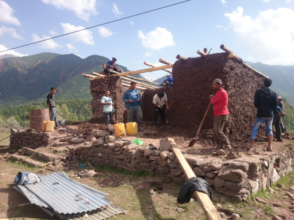 I stopped for lunch with a group of men working on a small building. I really enjoyed seeing what the local construction methods were like. It wasn't a complex building, simply made from wood and mud. The men stopped for a bit to share their tea and bread with me. It was nice to chat with them. I thought they were building a house, but they said it was some kind of garage. I think they might have meant it was a gas station? There wasn't really enough room inside to drive a car into it. After being there for 20 minutes, the foreman on the project started yelling at everyone. He was basically the only one left working on the building and was a bit cheesed off about it. Most of the younger men went back to work, but the two oldest men I had been sitting with just laughed and kept drinking tea.