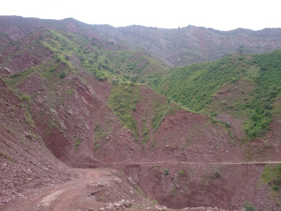The morning was cloudy, but beautiful. The terrain was gorgeous. The whole place was hemmed in by large mountains, and the mists hanging overhead just added to the mystique of the place. I couldn't help but feel lucky to be able to be here. In places like this I am reminded of how enormous the world is. I can find myself alone in one of these remote corners of the planet, even with seven billion people inhabiting it. Just amazing. As I continued on, the valley the road was built along wound through a narrow canyon. Some of the canyon walls were made from bright red soil, others were built from dark black stones. Both were covered with lots of green trees and plants. Down below, the dirty brown river roared as it snaked through the mountains.