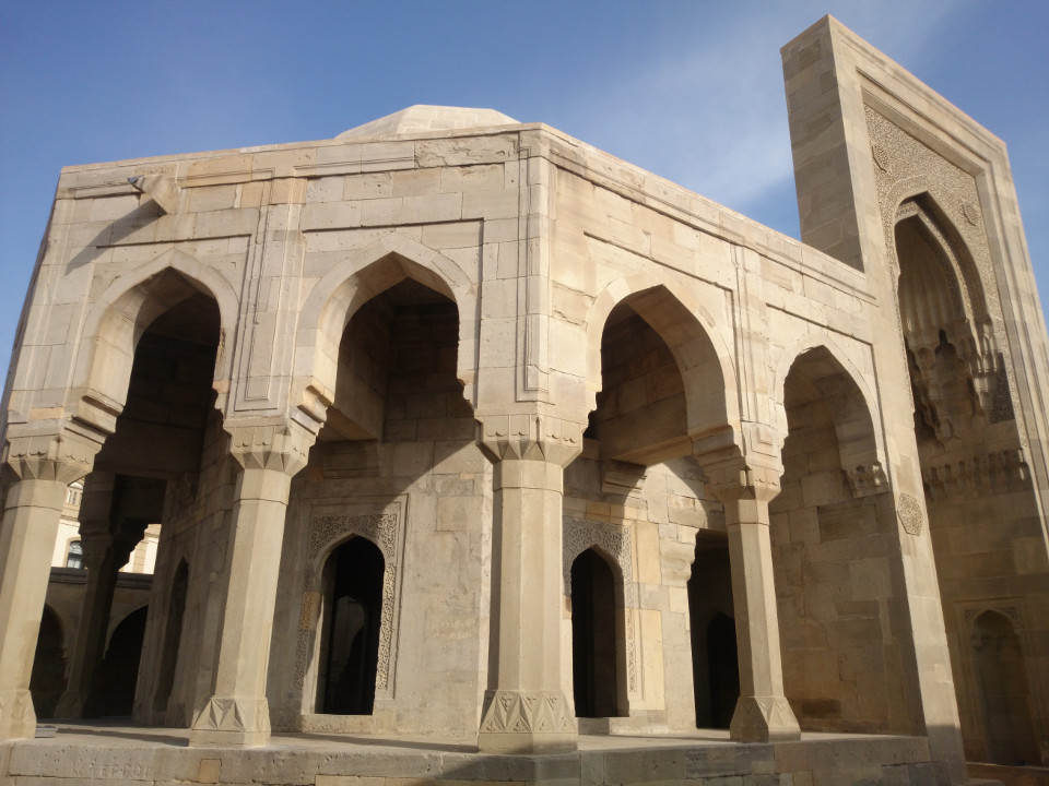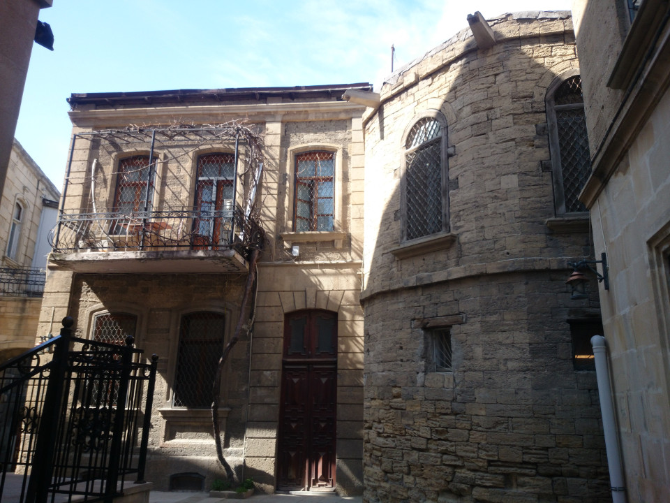 My favorite place was the Palace of the Shirvanshahs. I spent the last half of the afternoon there. It, again, is a re-imagination of what the palace should have looked like. Parts of it had been blown up during the First World War. It's amazing how much survived, though. The rebuilt dome had a projection built to show what patterns of tile might have covered the inside of it in historic times. It wasn't a huge place, but it was nice to see a bit more of the history of Baku. In the evening I went to dinner with my hosts. Since they have lived in Senegal and Turkmenistan, we had a lot to chat about. What awesome folks.