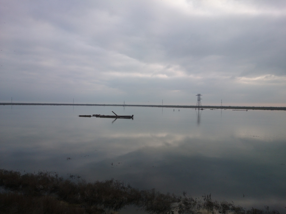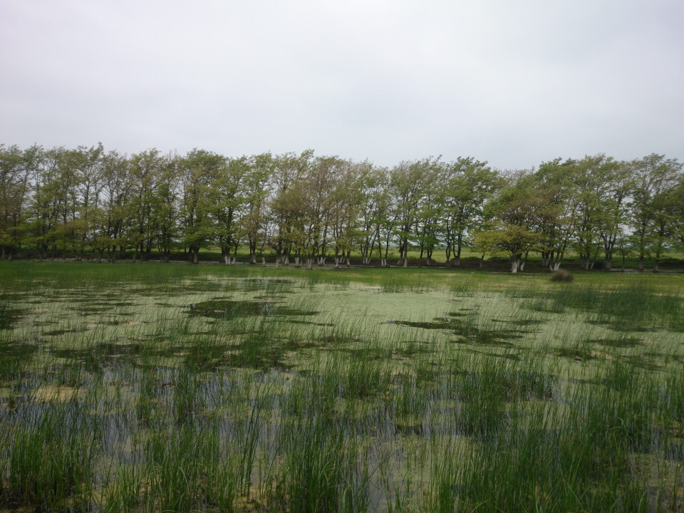 Out on the road at dawn, things were quiet. Large, shallow lakes soon lined both sides of the road. The morning air was still and cool. I stopped to take a picture of the mirror finish of the water and was imediately swarmed by bugs. Right, I forgot about bugs and water. These weren't mosquitoes, thankfully, just really annoying insects. I got out of there pretty quickly. The rest of the day was slow. The roads continued to be awful. Things were flat, but I was in from the Caspian Sea a bit so there wasn't much to look at. Mostly just farm fields, nothing to write home about. Or, you know, to you.