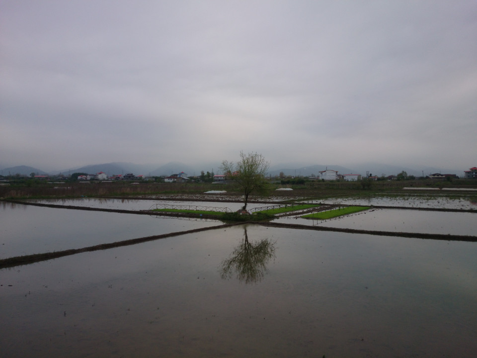 The land around has been really nice. Mostly it has been flat with rice fields all over. Rice is big here in northern Iran. One thing I've been enjoying is playing music. My little speaker has been blasting out good tunes all day. That's one thing that I can do to set my mind at ease and focus on what is around me, rather than the person following me. I am told that forms of "non-traditional" music are banned here. This includes almost anything rock'n'roll, and certainly anything American. I get a bit of subversive pleasure from playing good old American rock music while I am here. Plus, in my way of thinking, many of the songs are more traditional than the government that made up the silly law is. So, I think while I am in Iran my songs for each day will be something from before the Islamic Revolution. Enjoy.