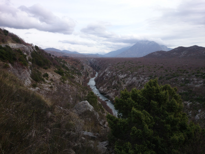 Behind the first set of hills was a narrow valley and then another set of hills. The road wound up into the highlands from there. Whenever I see a road doing squiggles on a map, I know it is going to be a hell of a thing. I think there were half a dozen switchbacks along this route, but for as steep as the road was I couldn't complain one bit. If I wasn't trying to make it to Mostar I would have gone down and done it again. The terrain, the views, were just that good. It was like a road you see in the movies and think I want to go there, except this was real and I was actually doing it. I ended up stopping a lot, not because I was tired, but because I wanted to take in the view just a bit longer, to look down over the precipice at the valley below. I had so much fun.
