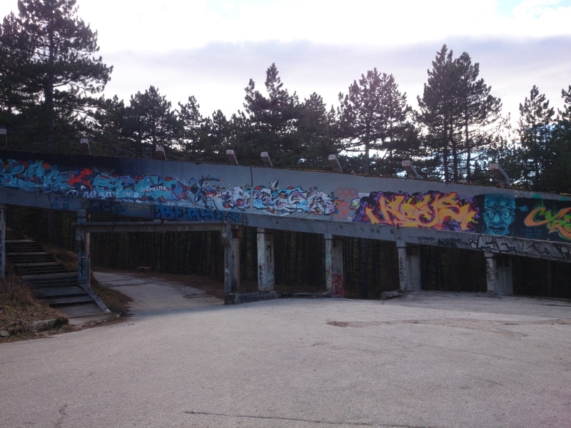 Once I got there I found out the site is now a kind of park. People can stroll around with their kids or take the dog for a walk, pretty much like any other park. This one just happens to have crumbling Olympic facilities in it. It is an oddity, a relic of very different past. Most of the people I saw would drive in, take a few minutes to look at the vandalized concrete, then drive away. I don't think they know what to make of it. It is just a structure up in the mountains, too heavy to move, too big to demolish. Just something to see once and then forget about again. But I wasn't just there to see the track, I wanted to experience it. Maybe not the same way that Wolfgang Hoppe did, but close enough. How often do you really get to make one of your dreams a reality? It was cool enough that I even ran the track twice. It would be pretty boring to just tell you about this. So I made you guys a video. I hope you enjoy it.