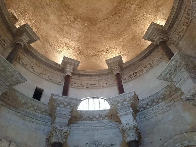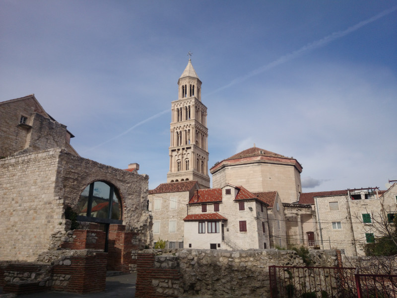 Today I took another day off. Split is a really cool town to hang out in and one of the places I really wanted to get to know. I also needed to do some laundry. Yesterday was Sunday so a lot of things were closed, unfortunately.But I have to consider it a good day since I was able to do all that I wanted and needed to. I started by exploring more parts of the palace I had missed the day before. I went into what was built as Diocletian's mausoleum and is now the church of St. Dominus. (I am somewhat curious about what happened to his body, since I don't imagine a pagan who claimed he was a god and persecuted Christians would be left when the temple was converted to a church.) The place does have some stunning architecture. It reminded me of the Pantheon in Rome (also a temple converted to a church), except the dome here was made of brick and didn't have an oculus the way the Pantheon does. Still, the architecture and the stonework are impressive. It really is a very pleasant space. I can understand why it wasn't torn down for being a pagan temple, and instead converted to a church. Apparently it is the second oldest Catholic cathedral still in use.